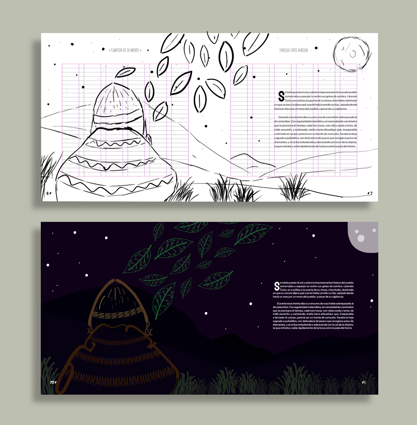 Se busca crear una propuesta gráfica detallada y visualmente atractiva para la diagramación e ilustración del cuento. Se emplearon elementos visuales que enriquezcan la narrativa y cautiven la atención del lector, capturando la esencia de la historia de manera impactante. Los caligramas serán la base de la construcción creativa de las ilustraciones como un recurso que eleve lo vistoso e interesante del cuento para el lector.