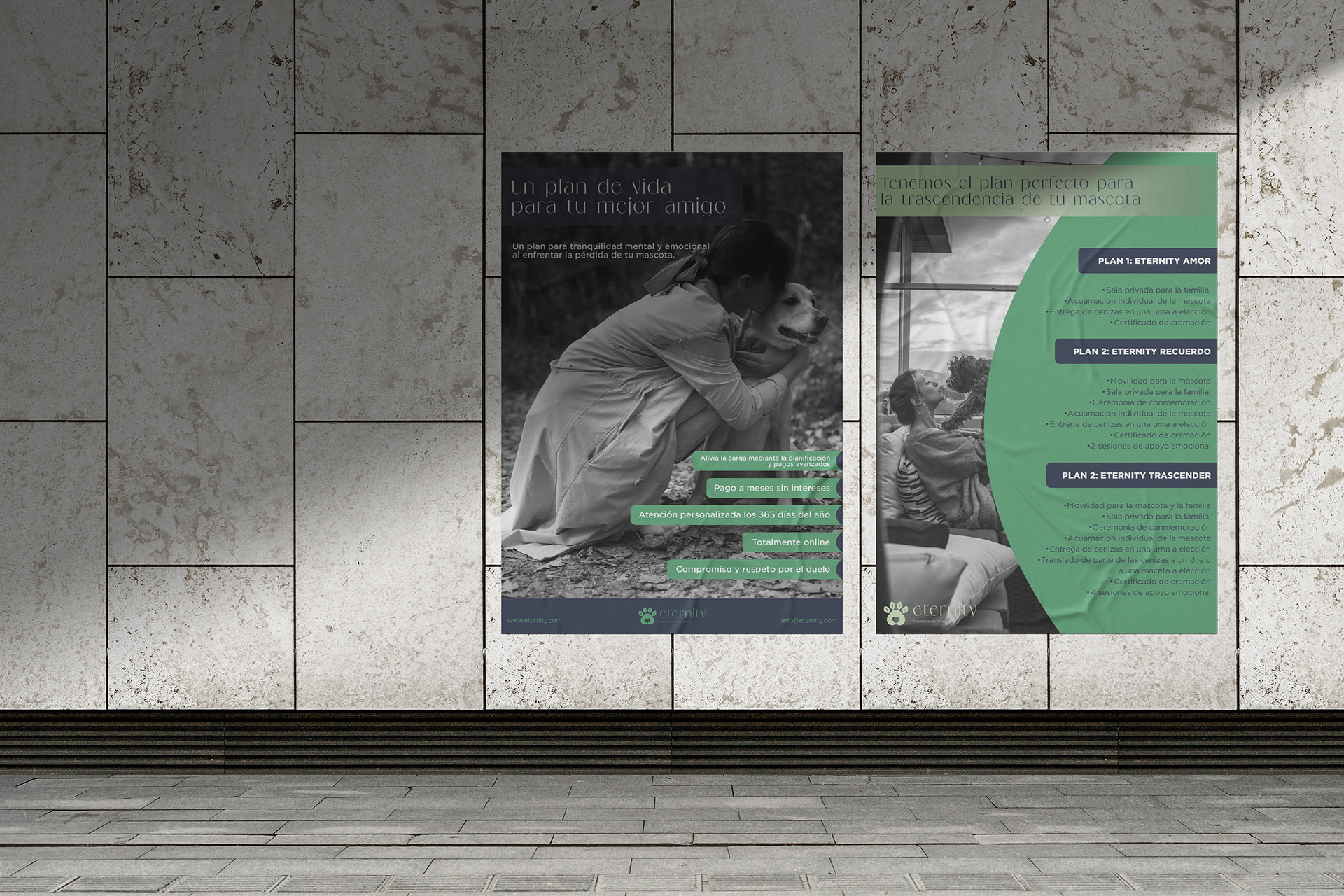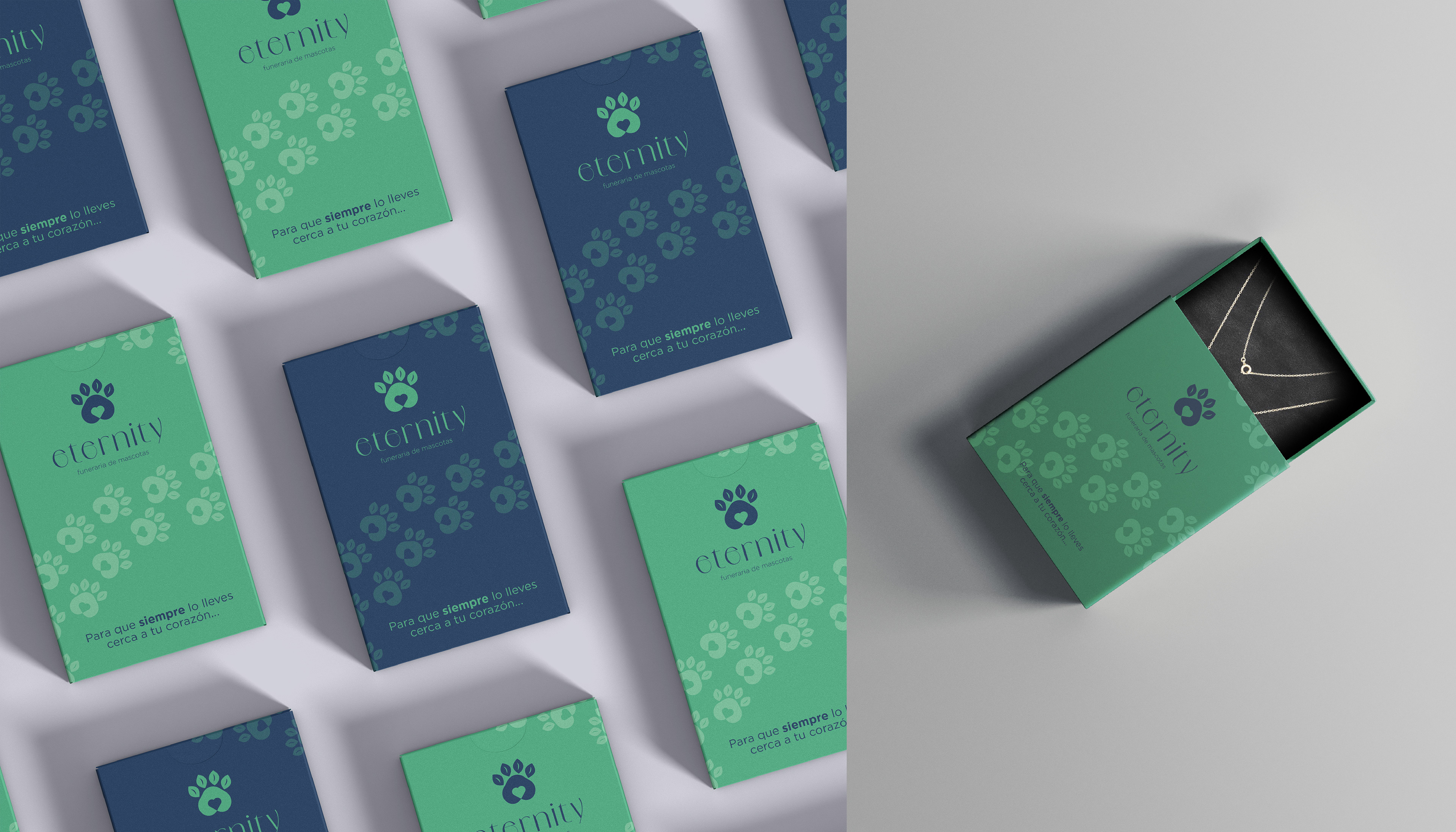Queremos transmitir la idea de que nada en nuestra naturaleza desaparece, sino se transforma. Nuestras mascotas ocupan un lugar clave en nuestra vida y el amor por ellos trascenderá. Eternity busca fomentar ese amor infinito a la vez que te brinda formas de mantener viva a nuestras mascotas en nuestros corazones.